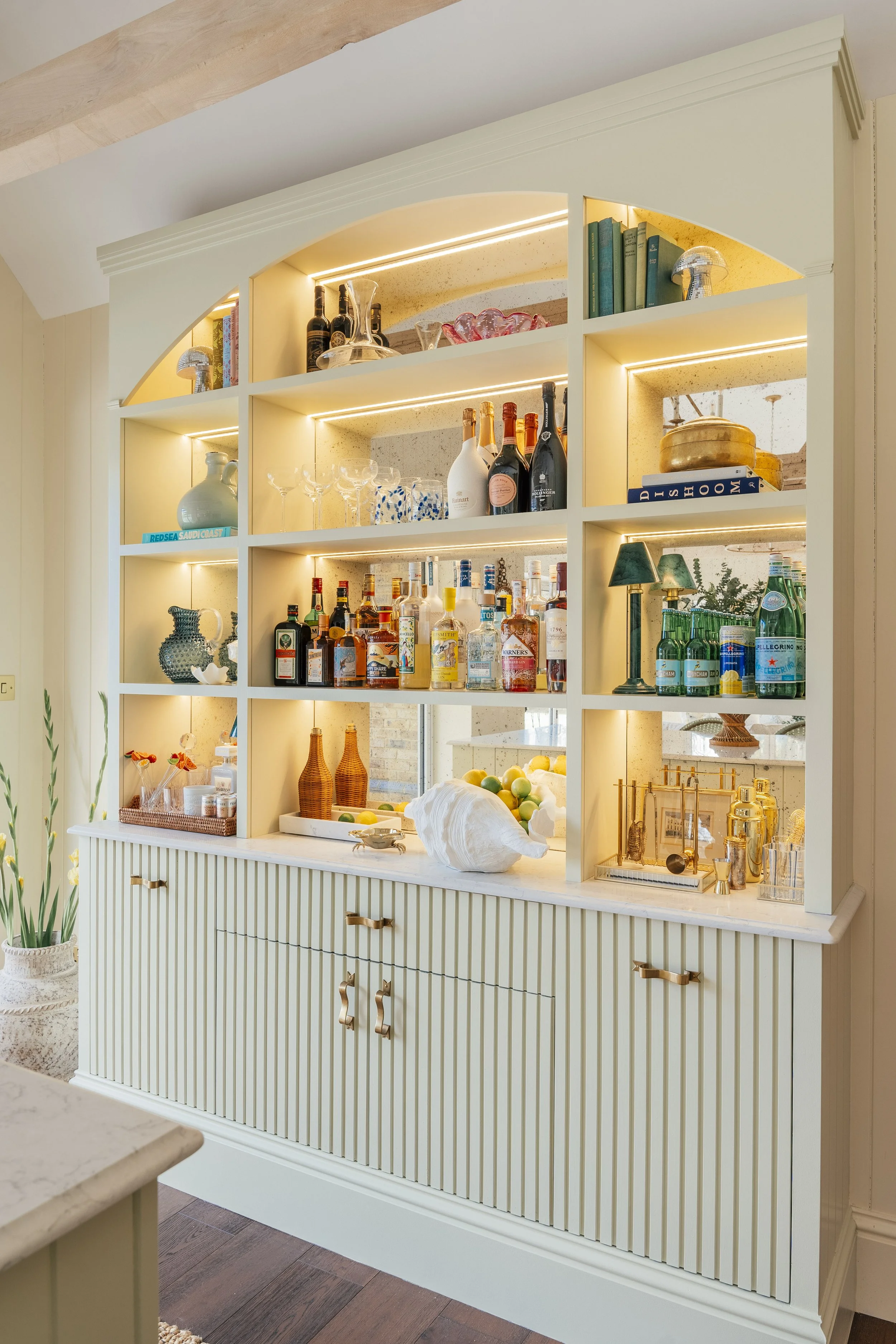 This newly built pool house was designed to balance character and functionality, creating the ultimate space for entertaining. Conceived as a true hosting hub, the layout includes a fully equipped kitchen, a holiday-inspired bathroom, and a relaxed living area complete with a bar and generous storage throughout.
